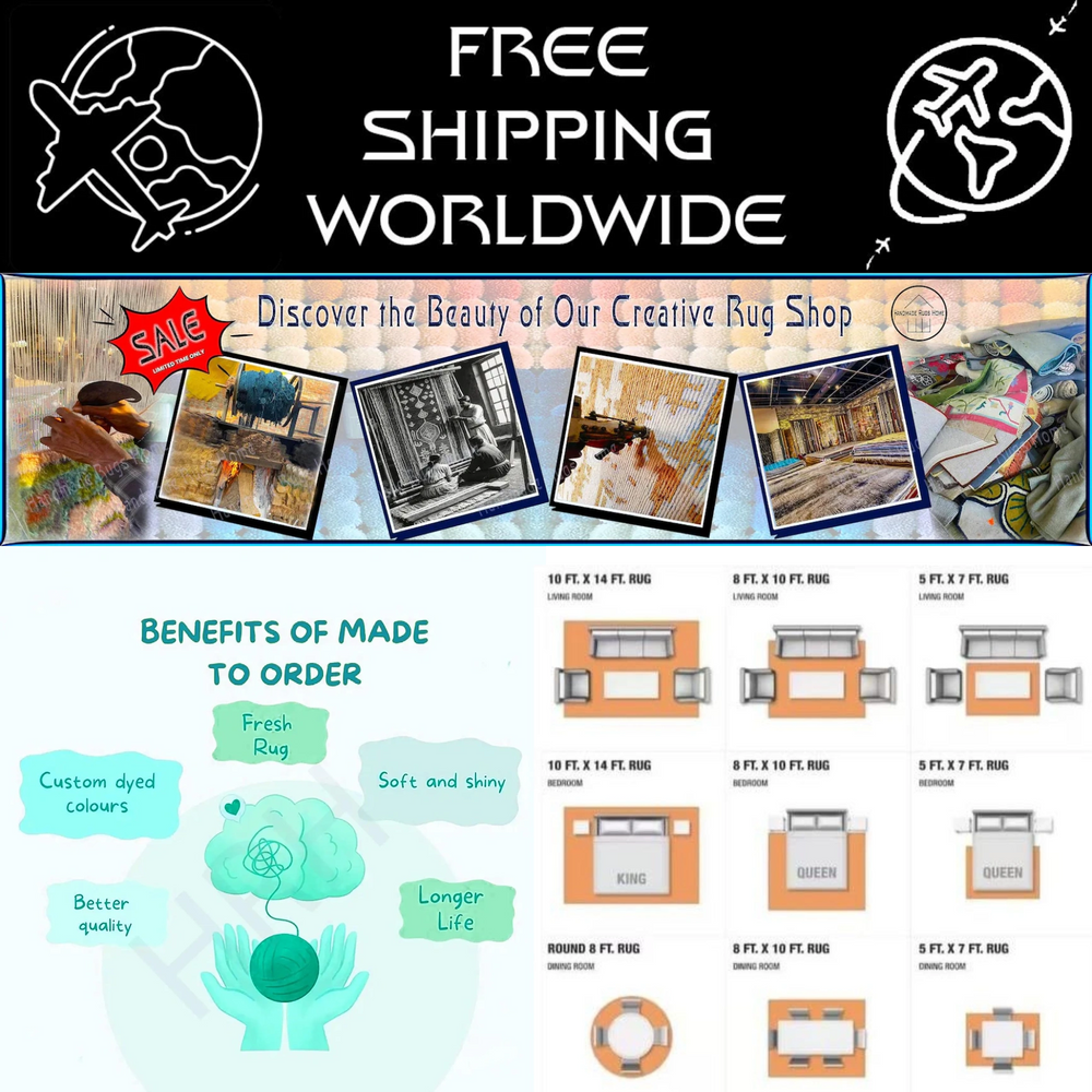 💌 For inquiries, custom orders, or to explore our collection, reach out to us at handmaderugshome [!at] gmail.com. Our team is thrilled to offer you a memorable rug shopping experience, helping you bring your unique vision to life with our beautiful, handcrafted rugs.